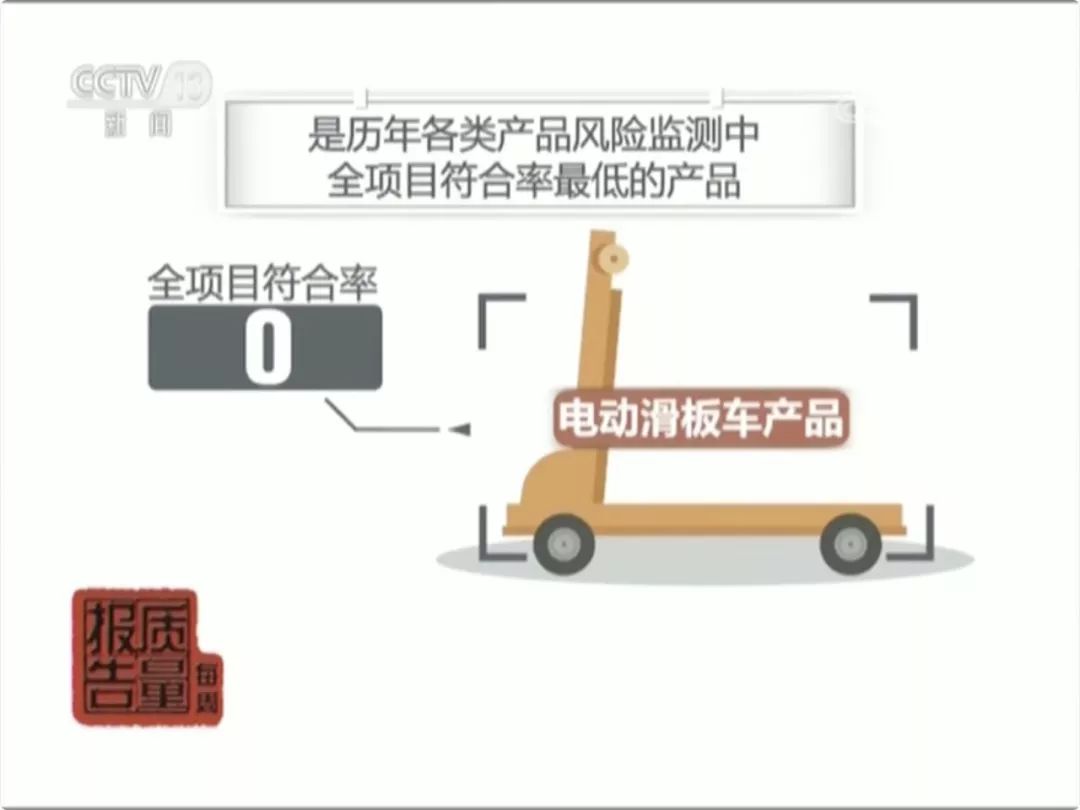 国家市场监督管理总局最新发布电动滑板车风险监测结果显示,电动滑板车产品全项目符合率为0,是历年各类产品风险监测中全项目符合率最低的产品。