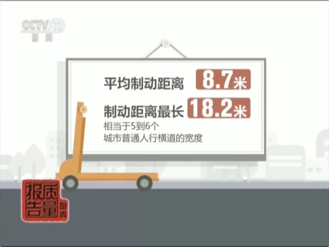 在风险监测的40批次样品中,只有2批次样品制动距离在4米以内,平均制动距离为8.7米,制动距离最长的一个样品达到18.2米,相当于5到6个城市普通人行横道的宽度。