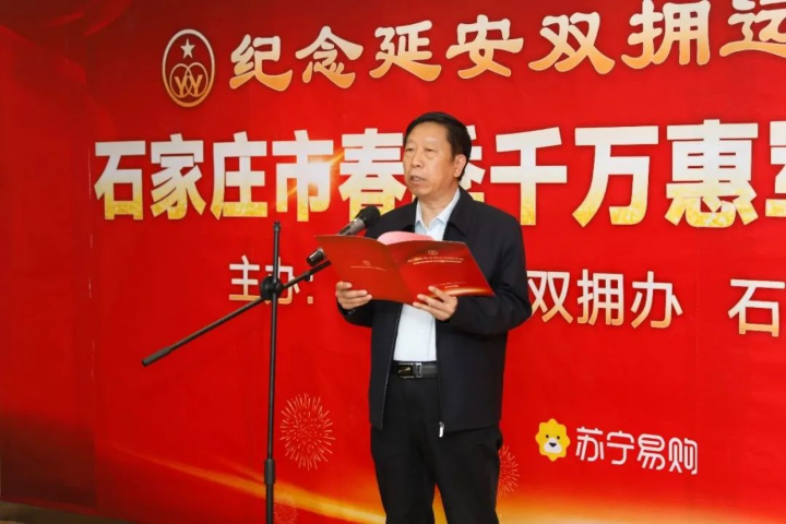 为纪念延安双拥运动80周年,持续弘扬我市拥军优属光荣传统。4月18日上午,市双拥办、石家庄苏宁易购联合举办石家庄市“春季千万惠军专场购”活动,让军人军属、退役军人和其他优抚对象得实惠、真受益,持续增强他们的获得感、幸福感和荣誉感。省退役军人事务厅拥军优抚处处长蒲小青、市双拥办副主任、市退役军人事务局副局长李红武出席活动并讲话,市退役军人事务局三级调研员申剑红主持活动。