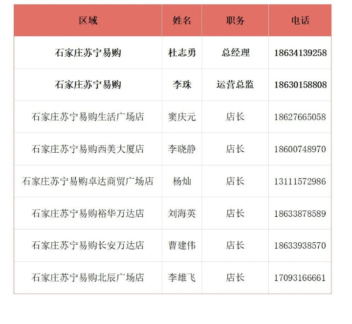石家庄苏宁服务监督电话:杜志勇 18634139258