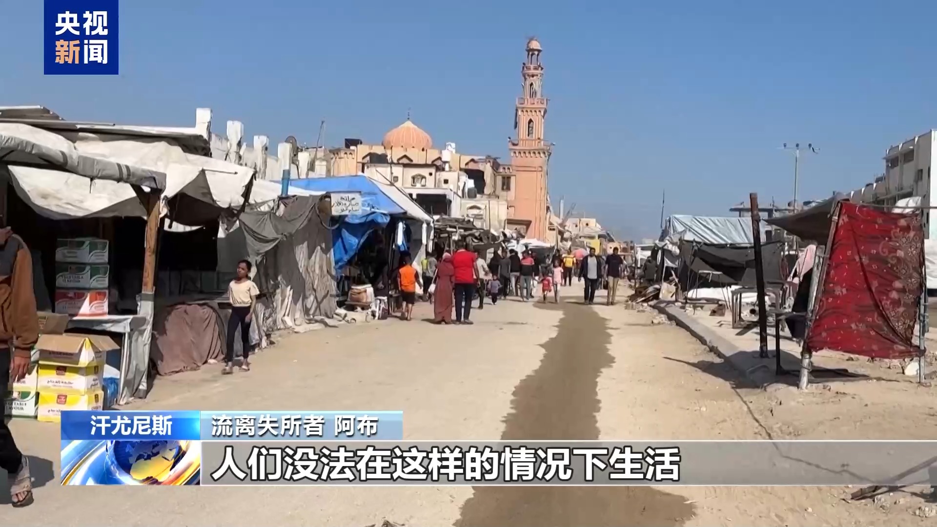流离失所者 阿布:生活太艰难了,我们加沙的巴勒斯坦人真的已经到了挨饿的程度。请看看这个市场,请用相机记录下这一切,几乎就没有什么东西在卖。人们没法在这样的情况下生活,我们不知道该怎么活下去,我们每一刻都想要死去,也比这样活着要好,我到市场来想买东西,可我什么也买不回去。