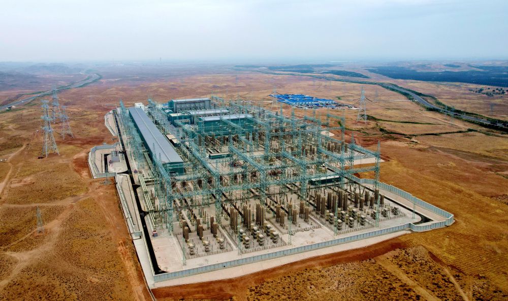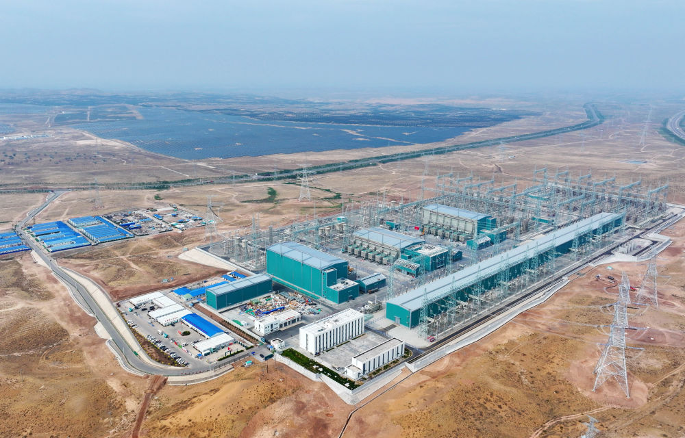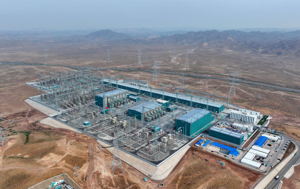 ↑ 这是6月29日拍摄的“宁电入湘”工程宁夏中卫市中宁换流站(无人机照片)。新华社发(袁宏彦 摄)