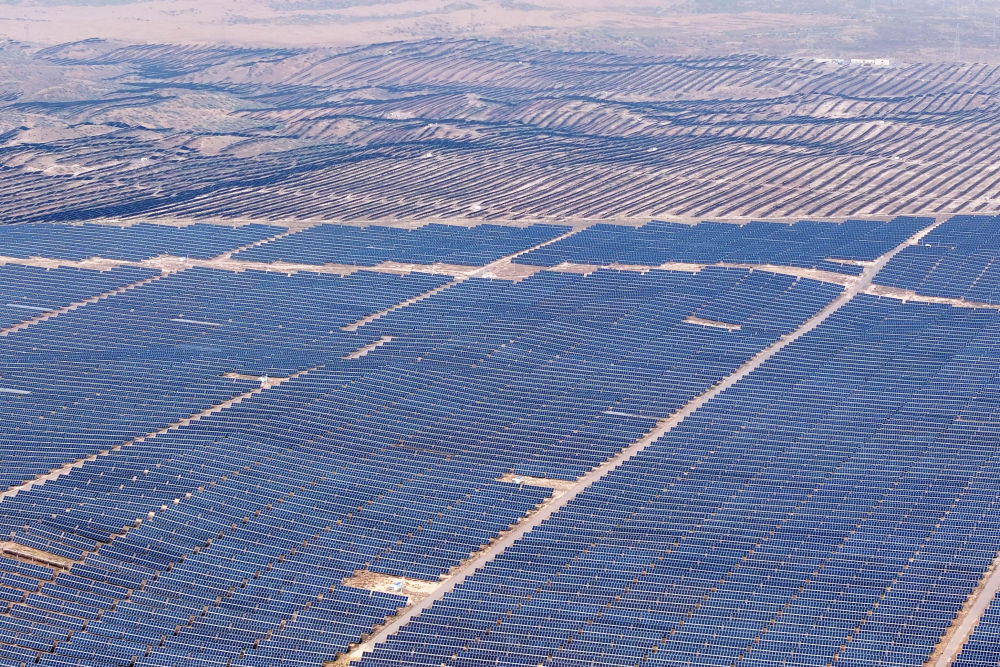 ↑ 这是6月29日拍摄的“宁电入湘”工程宁夏中卫市光伏发电基地(无人机照片)。新华社发(袁宏彦 摄)