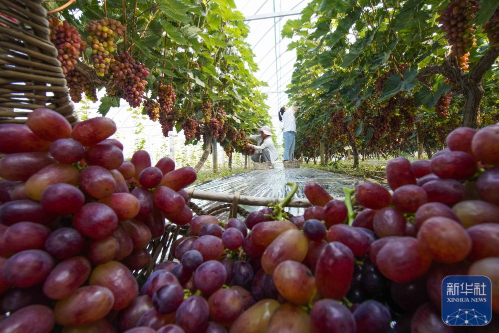 7月22日,河北省遵化市团瓢庄镇朱官屯村农民在采摘葡萄。新华社发(刘满仓 摄)