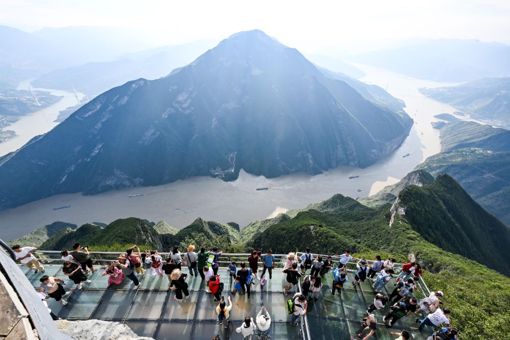 ↑ 10月5日,游客在重庆奉节三峡之巅景区游览。新华社记者 陈晔华 摄