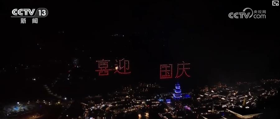 在湖北黄梅,夜空中数百架无人机整齐升起,勾勒出喜迎国庆等造型;焰火腾空而起,与无人机的灯光交相辉映,将夜空点缀得如梦似幻。除了科技元素的融入,当地还注重传统文化的深度呈现,以湖面为舞台,全新编排的水幕黄梅戏《白蛇问情》浪漫上演。而《天仙配》《梁祝》等经典戏曲,更是吸引了众多市民游客驻足欣赏。