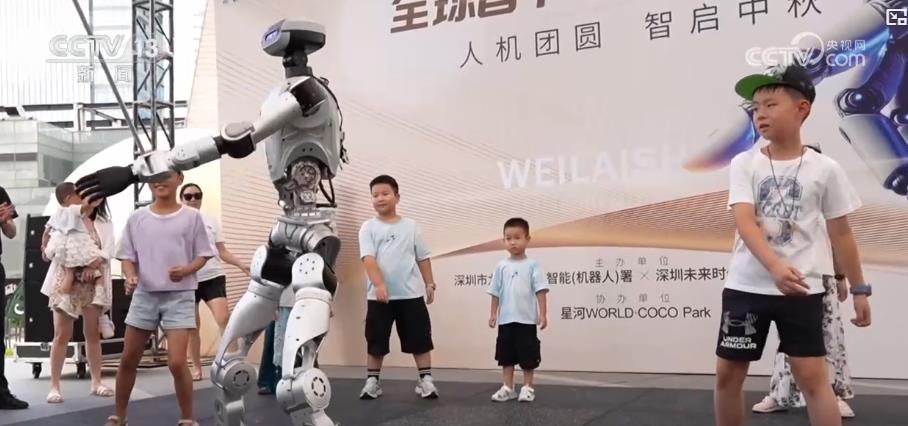 在广东深圳,机器人化身舞者,表演潮汕英歌舞,机器人脸戴面具,手持短木棒,跟着节奏,用短木棒相互对击。而在“机器人千手观音”的表演中,6台机器人站成一条直线,双臂依次抬起落下,颇具工业美感。一连串的表演,要数流行舞的表演动作最流畅,看机器人跳得带劲,不少孩子也跟着扭起来。