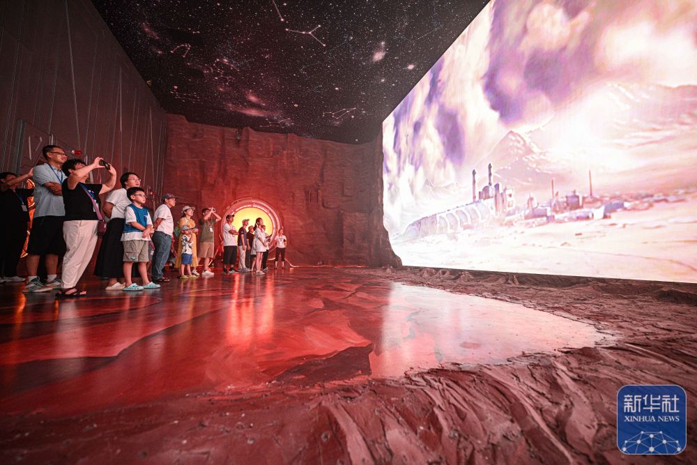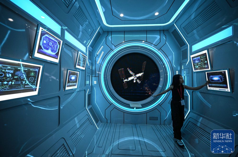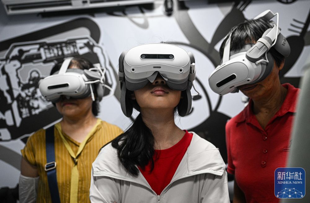 ↑ 10月7日,游客在文昌航天科普中心进行MR星际穿越体验。