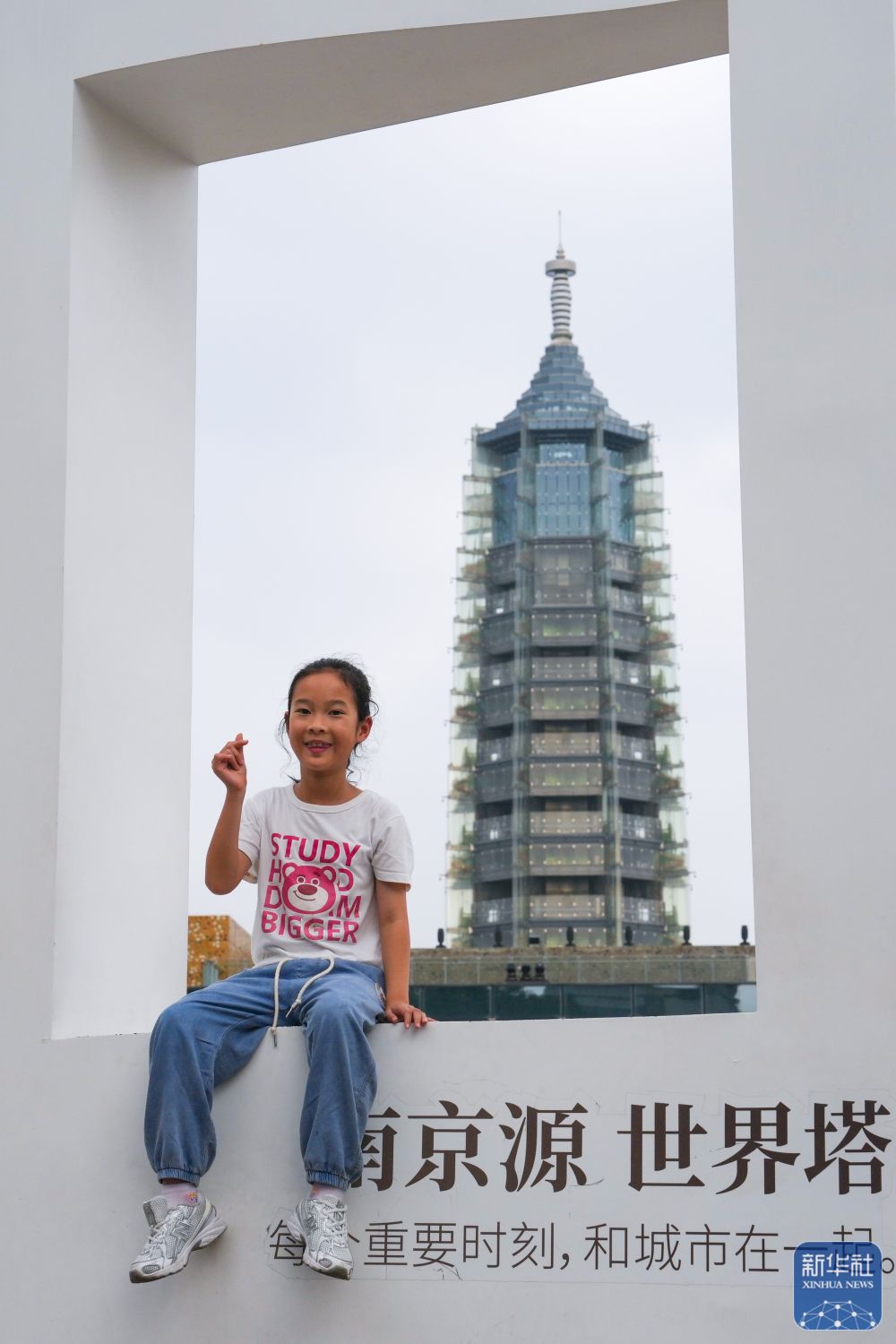 ↑ 10月7日,小朋友在江苏省南京市秦淮区的大报恩寺遗址博物馆拍照留念。新华社记者 李博 摄