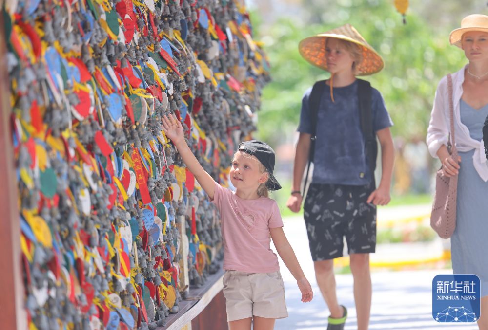 ↑ 10月7日,游客在海南三亚南山文化旅游区游览。新华社发(陈文武摄)