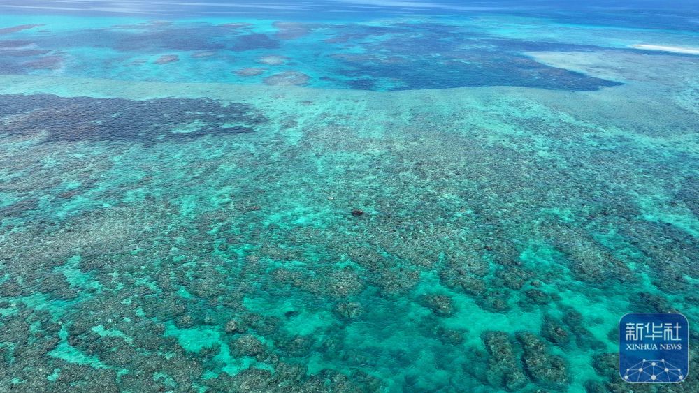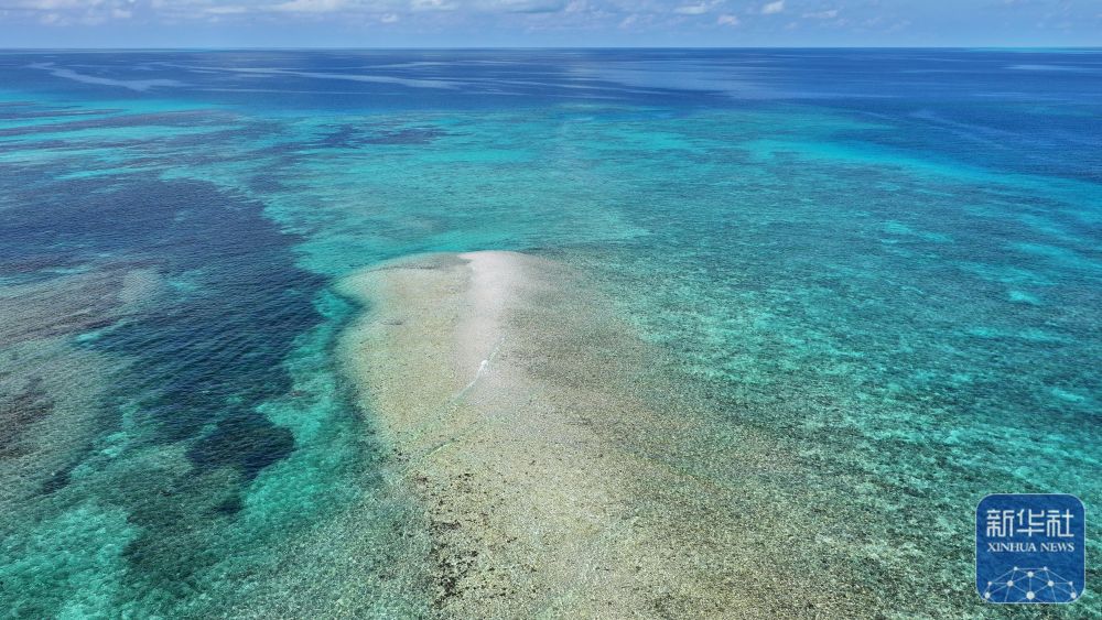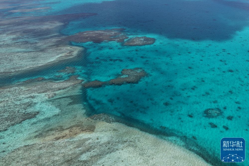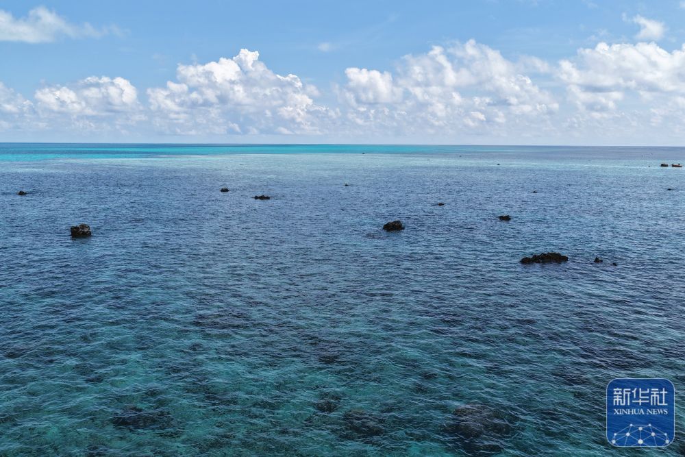 ↑10月2日拍摄的黄岩岛礁盘与潟湖。新华社发