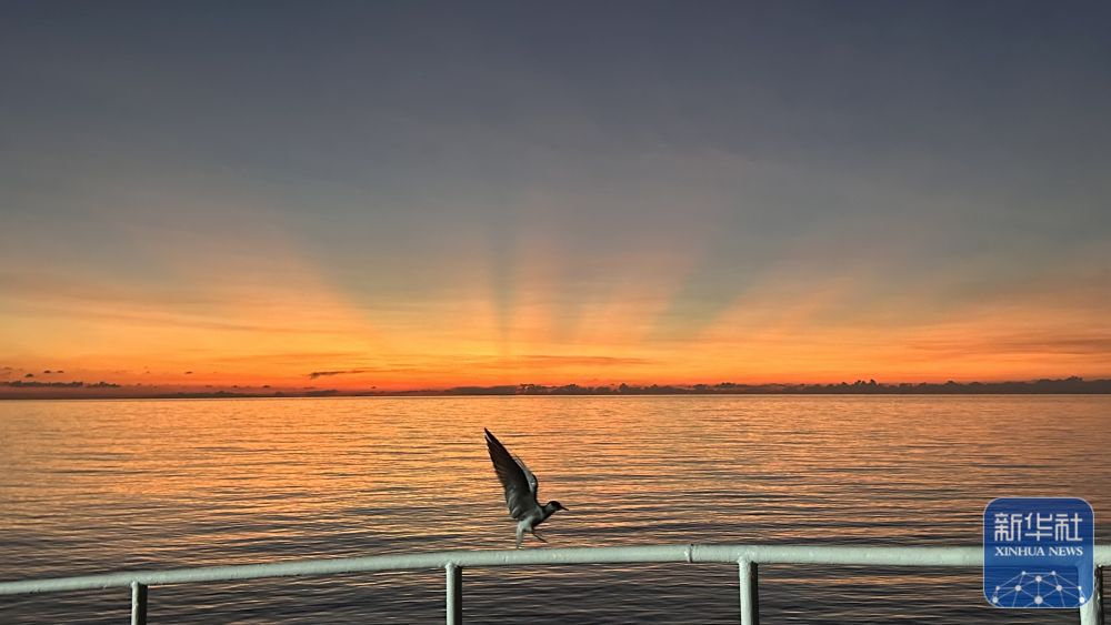 ↑10月2日拍摄的黄岩岛海域的夕阳。新华社发