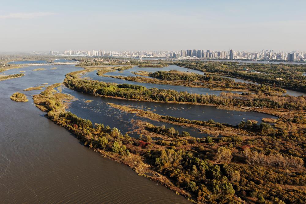 10月的哈尔滨,湿地秋意醉人,一幅生态与人文交相辉映的美丽画卷沿江展开。哈尔滨湿地资源丰富,现有湿地名录面积4.05万公顷,百里生态长廊的图景构成了一条壮阔的城市湿地景观带。新华社记者 王松 摄影报道