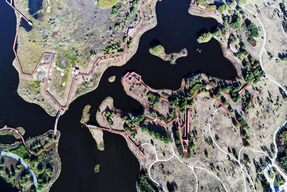 这是10月7日拍摄的哈尔滨太阳岛国家湿地公园景色(无人机照片)。