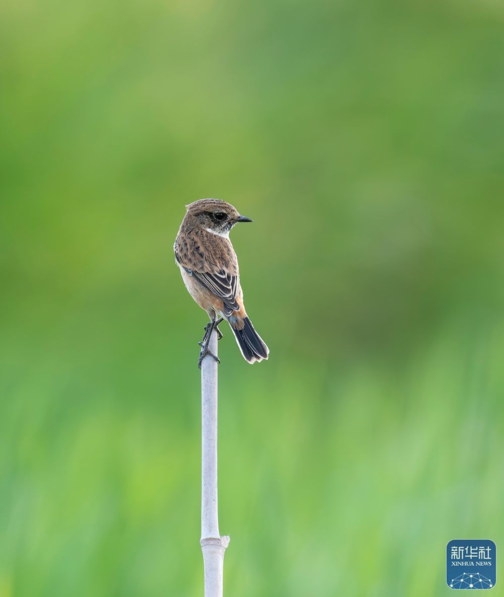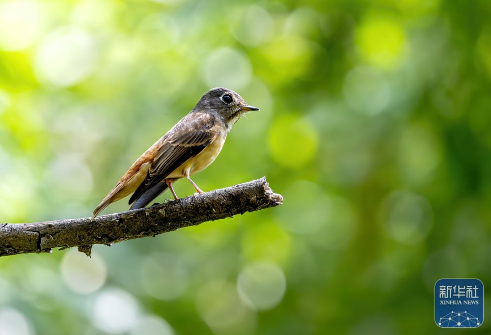 ↑ 在福州金牛山公园,一只棕尾褐鹟在枝头上停歇(4月22日摄)。