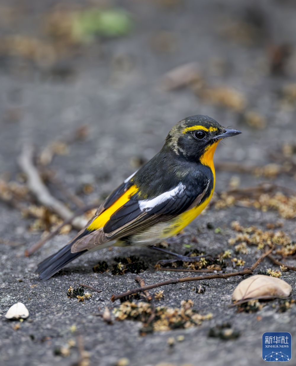 ↑ 在福州乌山风景区,一只黄眉姬鹟在觅食(4月17日摄)。