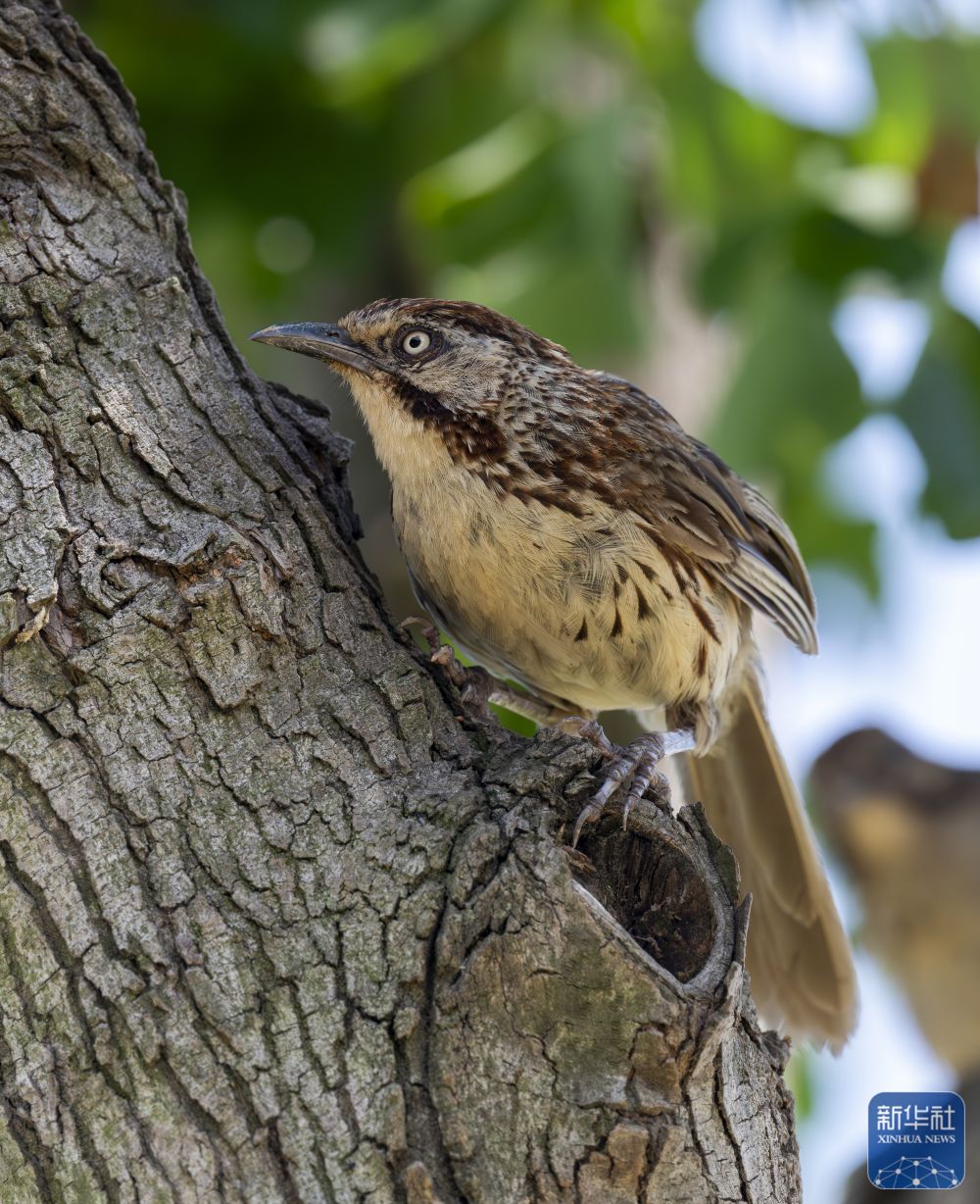 ↑ 在厦门集美区的龙舟池畔,一只矛纹草鹛在树枝上觅食(9月9日摄)。