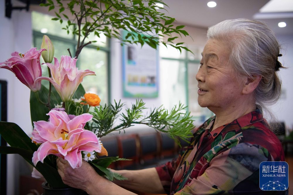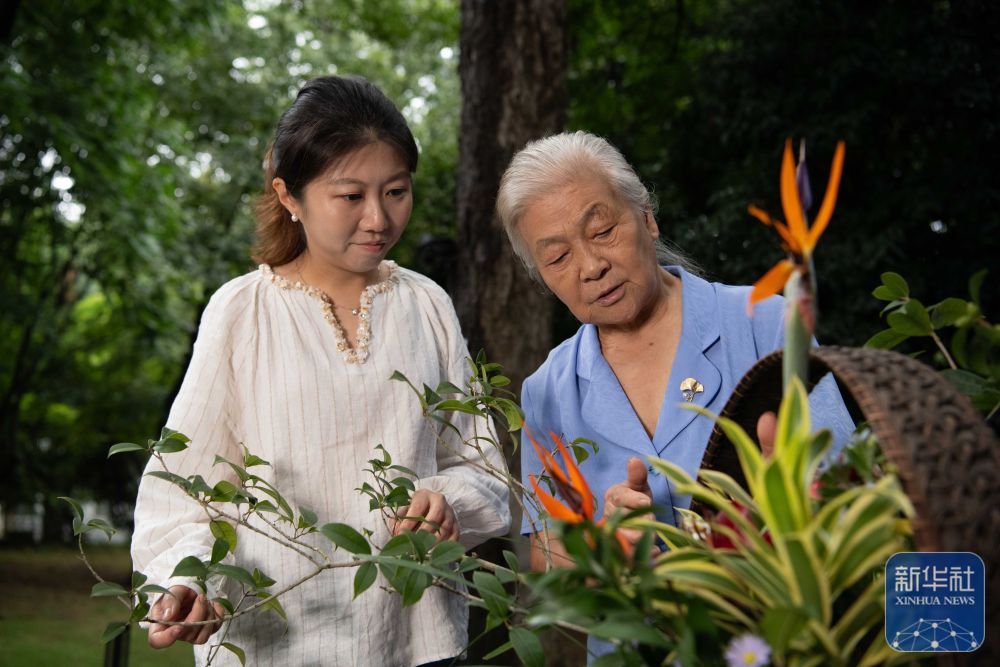 八旬老人付玉兰是这支团队的发起人,退休前,她在安徽农业大学任教,助推了该校在全国较早开设“插花艺术” 课程,她还常态化举办学生插花作品展,受到校内外关注。