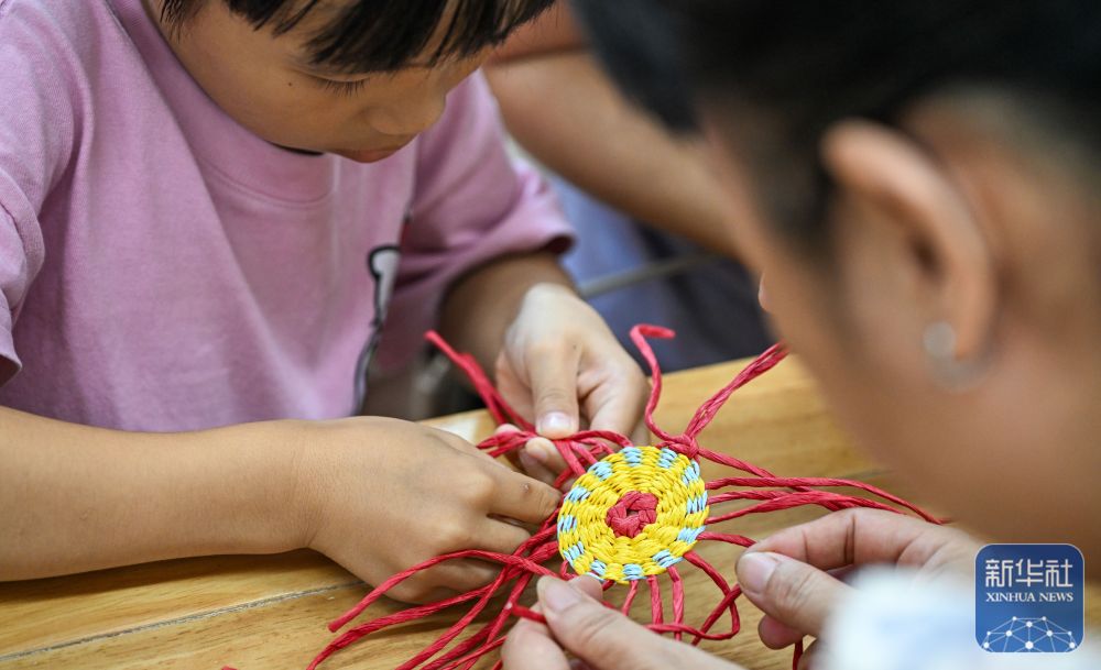 10月12日,不少家庭来到位于海口的海南省文化馆“海文学堂”,在非遗传承人指导下体验东山草编技艺,通过完成传统手工艺作品学习非遗知识、理解文化内涵,在互动中感受传统文化魅力。东山草编技艺是海南省海口市秀英区东山镇的传统手工技艺,入选第六批海南省级非物质文化遗产名录。新华社记者 杨冠宇 摄影报道