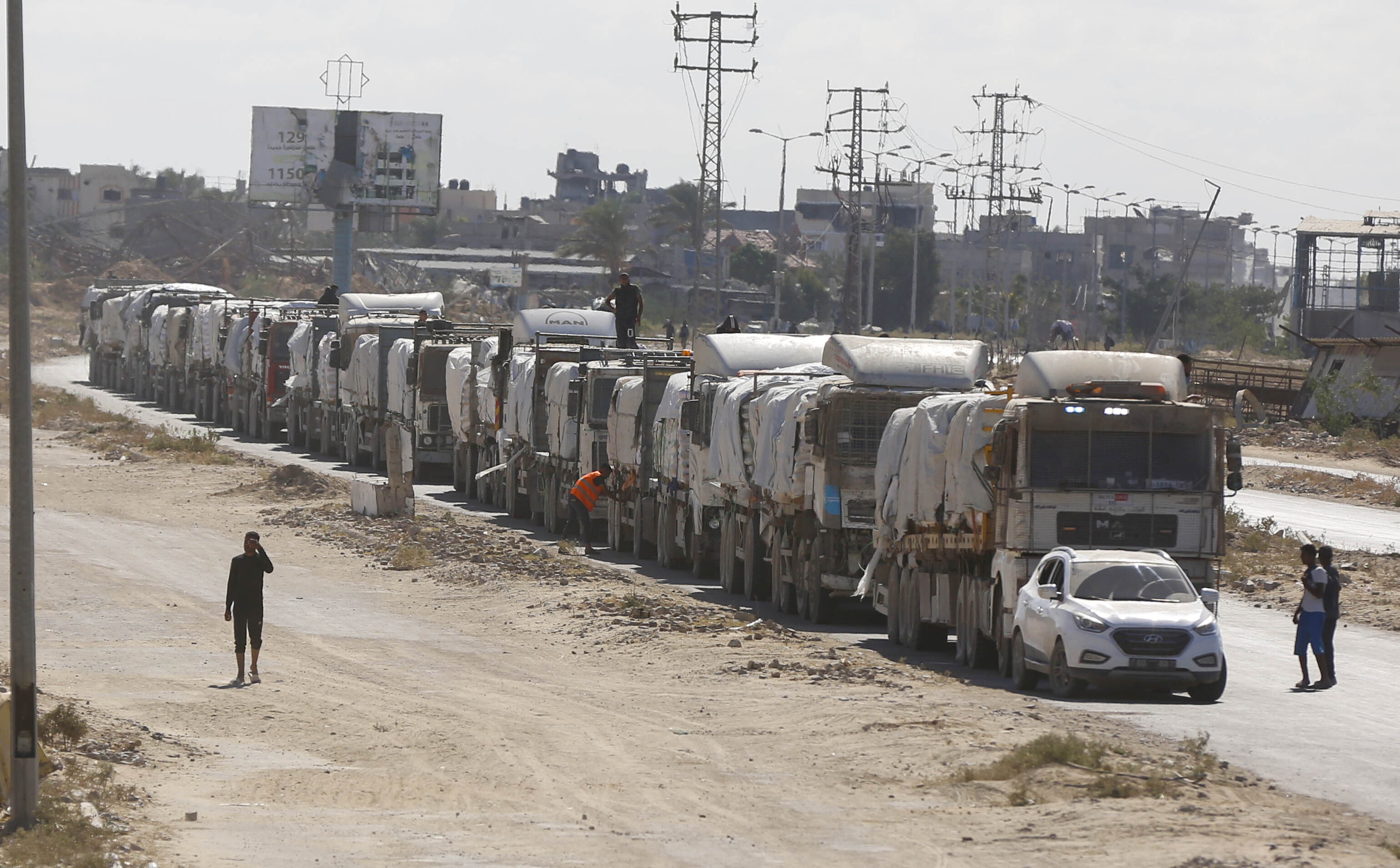 △当地时间10月14日,停火协议生效后,载有人道主义救援物资的卡车抵达加沙。