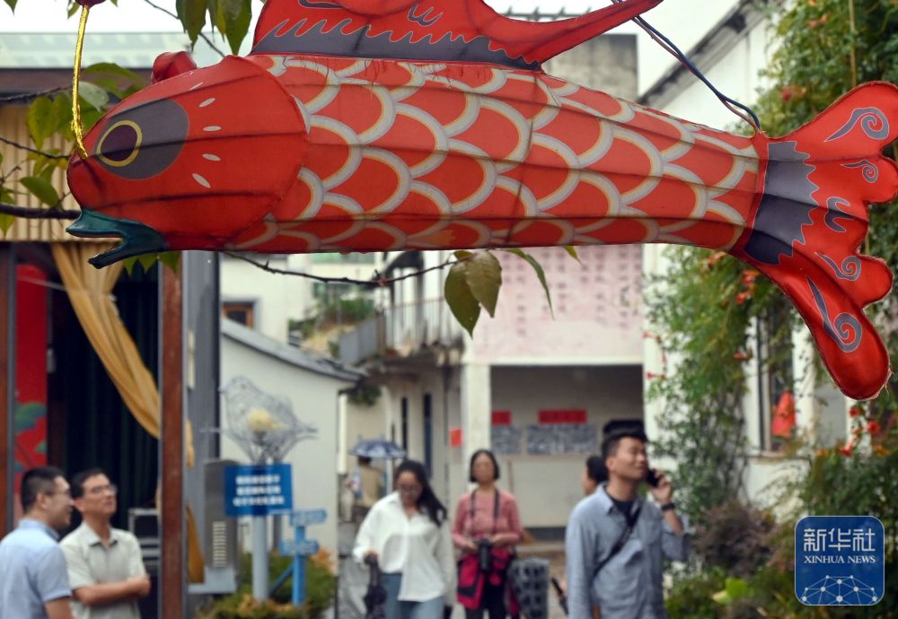 ↑ 10月14日,游客在李祖村参观。新华社发(王颂 摄)