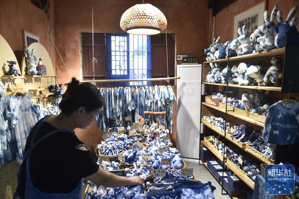 ↑ 10月14日,李祖村一家店铺的工作人员在整理货品。新华社记者 鲁鹏 摄