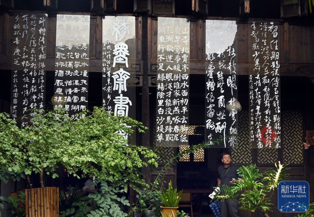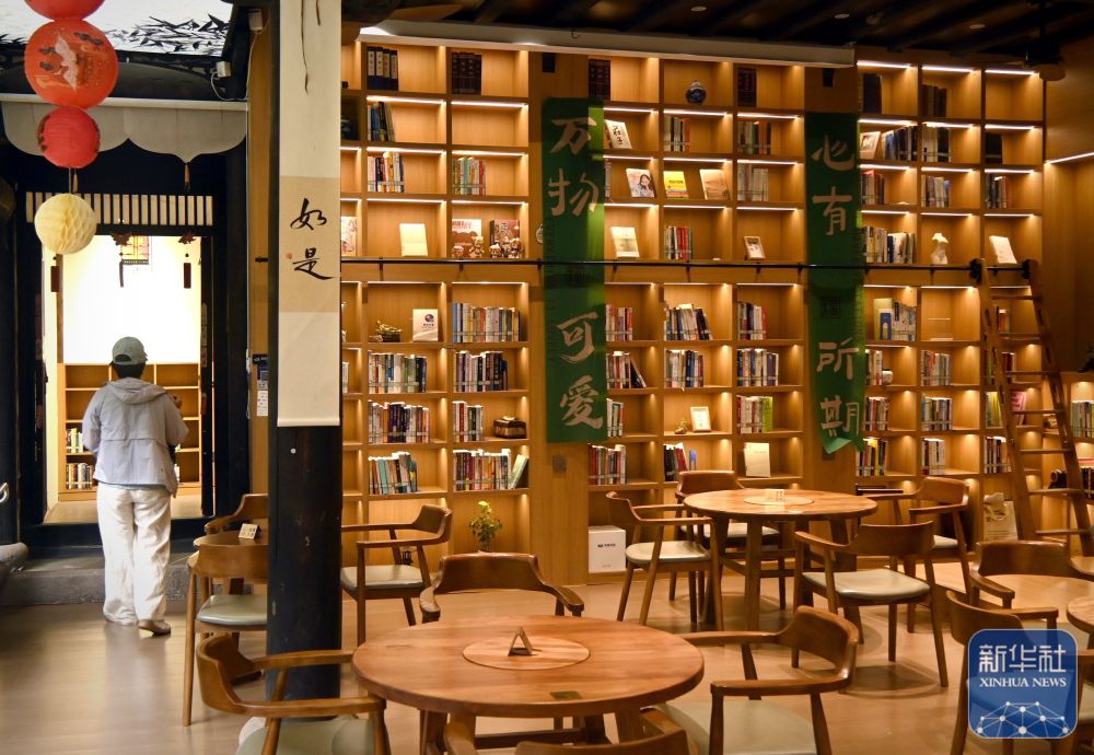 ↑ 10月14日,游客在李祖村的一家书屋参观。新华社发(王颂 摄)