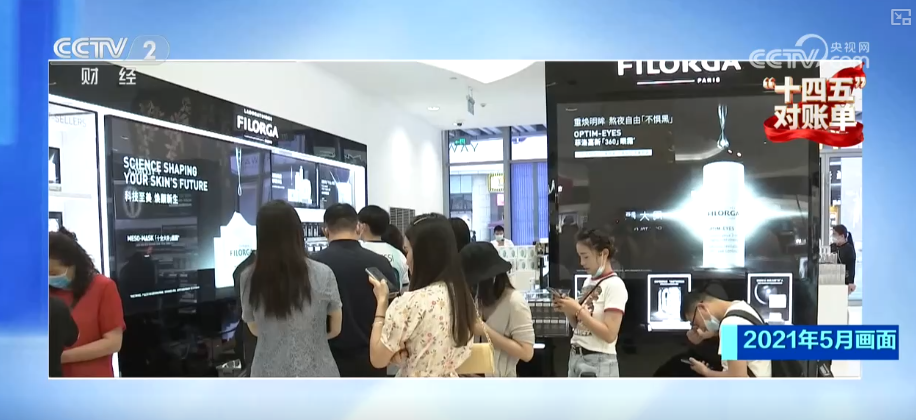 从买得到到买得好,再到买得高兴,五年间,消费的节奏和内容已经截然不同,这正是“十四五”期间消费结构变化的一个鲜活注脚。这背后,是我国超大市场规模带来的底气。我国位居全球第二大消费市场的地位更加稳固。“品质消费”成为关键词,在身边老旧家电通过消费品以旧换新政策成为更智能、更绿色的新型家电。翻开家庭账本,用于旅游、文化、教育的服务消费支出增速已经超过商品消费的增速。传统商场焕然一新,更多优质商品和服务进入中国,也有更多国潮品牌走向全球。