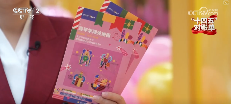 而最大的变化还不是它体量的扩张,而是消费场景的变化。比如置身在这个中庭当中,仿佛进入到了一个巨大的游乐场,而消费者手中原来人手一份的购物清单,如今已经变成了这一份闯关地图。按照地图的指引完成盖章打卡的任务,就可以获得游戏币。游戏币可以参与到这种大型游乐装置当中,获得优惠,也可以获得小礼品。在这里不仅能够买到自己心仪的产品,更能够获得一份愉快的购物体验。