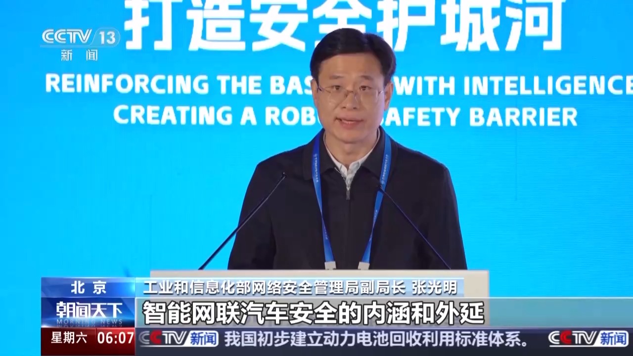 工业和信息化部网络安全管理局副局长 张光明:智能网联汽车安全的内涵和外延也发生根本性演变,从被动碰撞安全拓展至涵盖网络安全、数据安全、行驾安全的系统性理念。我们将共筑安全防线,以共同行动守护产业发展。