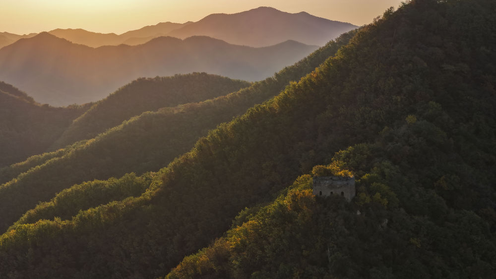 ↑ 10月18日在河北省唐山市迁西县上营镇拍摄的青山关长城秋景(无人机照片)。新华社发(刘满仓 摄)