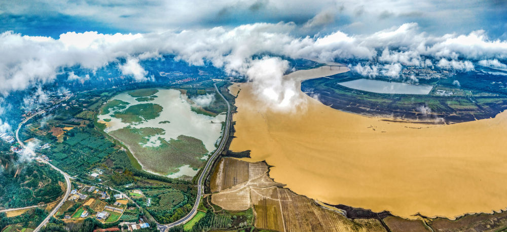 ↑ 10月17日在山西省运城市平陆县境内拍摄的黄河云海景观。新华社发(薛俊 摄)