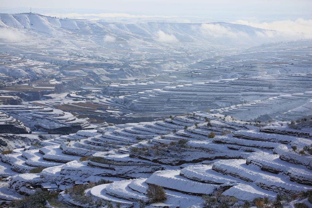 ↑ 这是10月17日在甘肃省定西市安定区青岚山乡拍摄的雪景。新华社发(王克贤 摄)