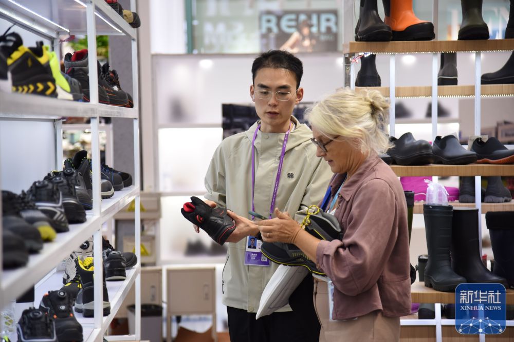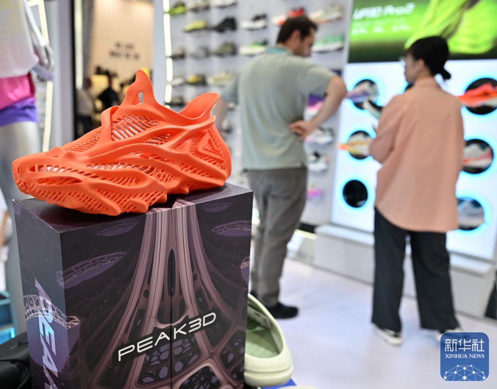 ↑ 11月3日在广交会展馆拍摄的匹克3D打印健步鞋。新华社记者 肖恩楠 摄