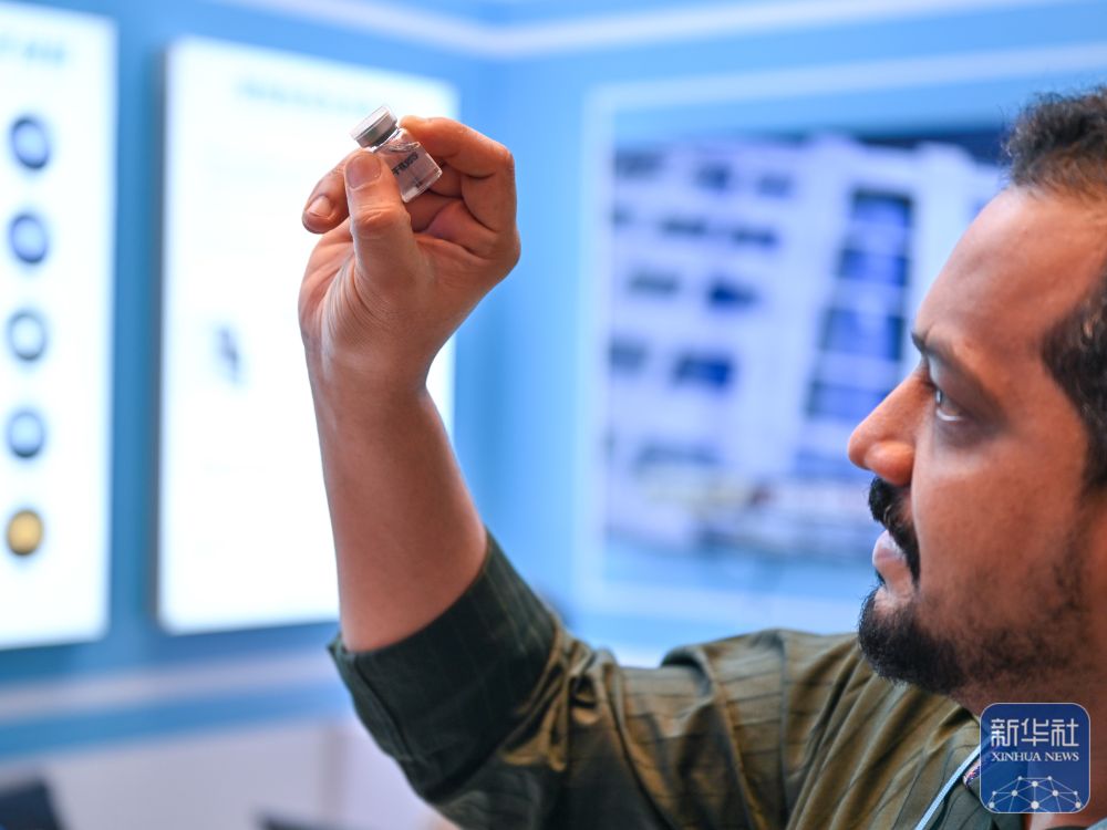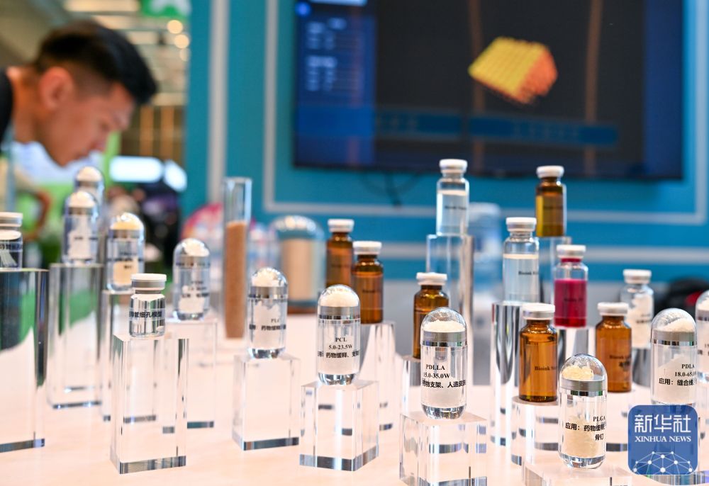 ↑ 11月3日,观众在广交会展馆捷诺飞生物展台观看生物3D打印的样品。新华社记者 肖恩楠 摄