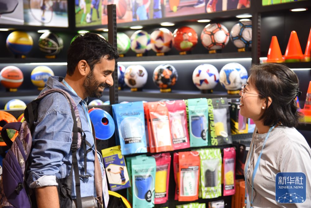 ↑ 11月2日,采购商在第138届广交会第三期与参展商交流。新华社记者 洪泽华 摄