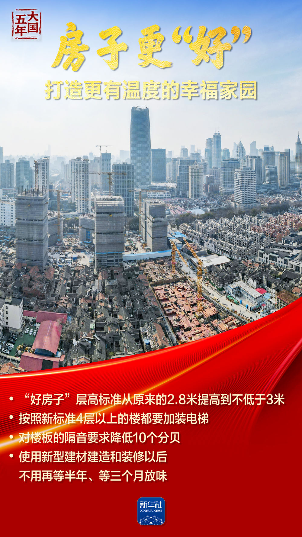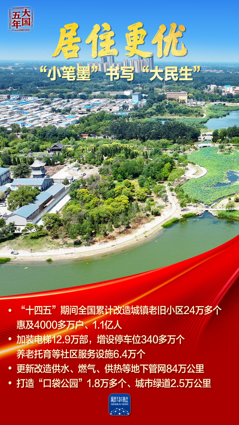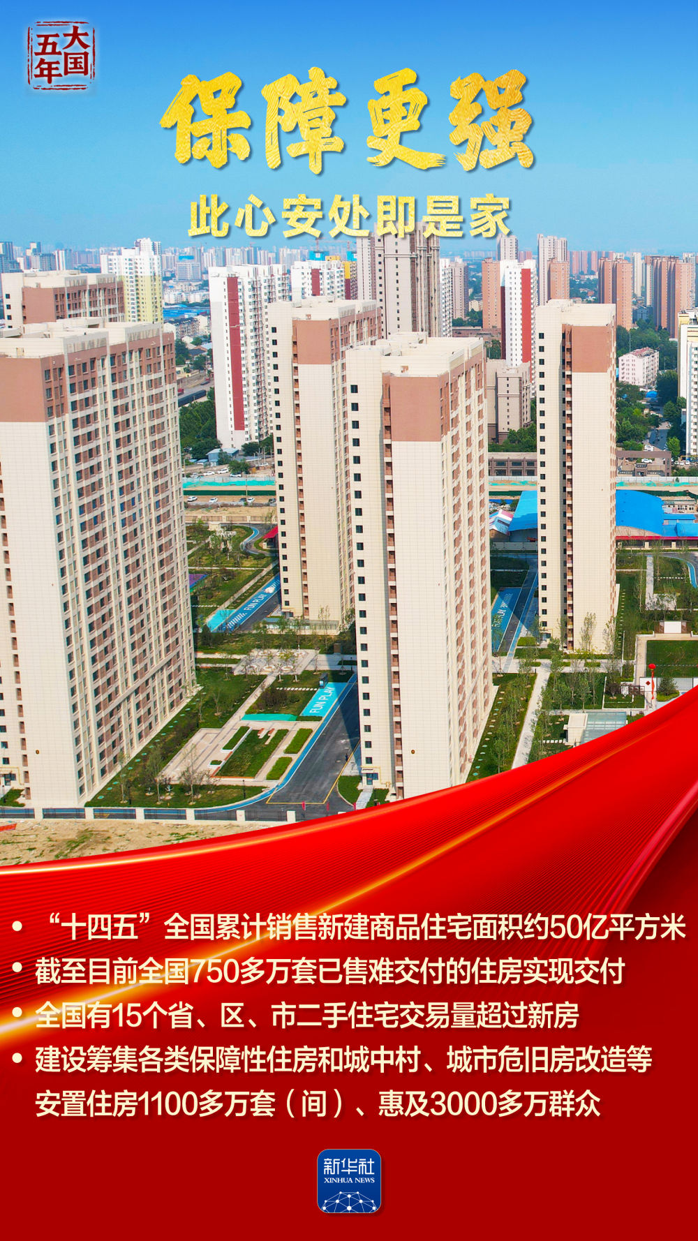 千万套保障性住房拔地而起,托起新市民、年轻人“此心安处”的安居梦;数十万个老旧小区焕然一新,老街坊、老邻居原地邂逅现代生活……从推动“保交楼”到建造“好房子”,从老旧小区改造到城市环境焕新,“十四五”这五年,一幅幅“住有所居、居有所安”的民生画卷徐徐展开,把人民群众美好生活的“小确幸”一笔一画写进现实。