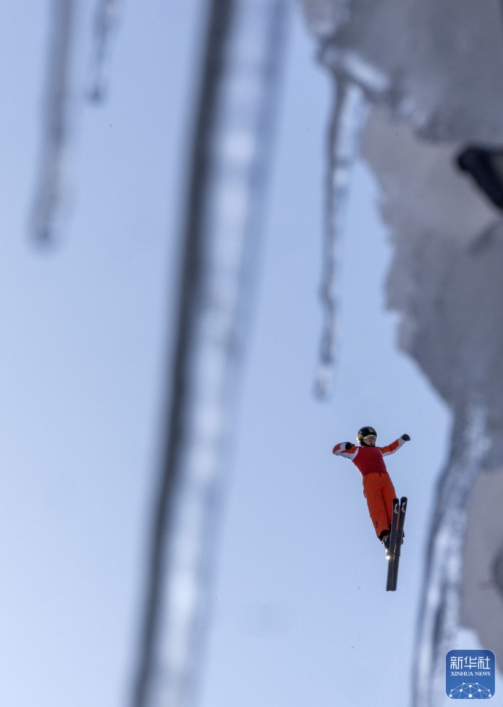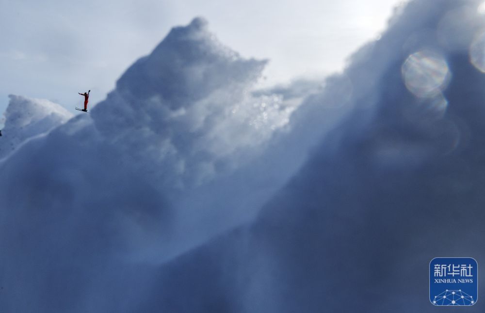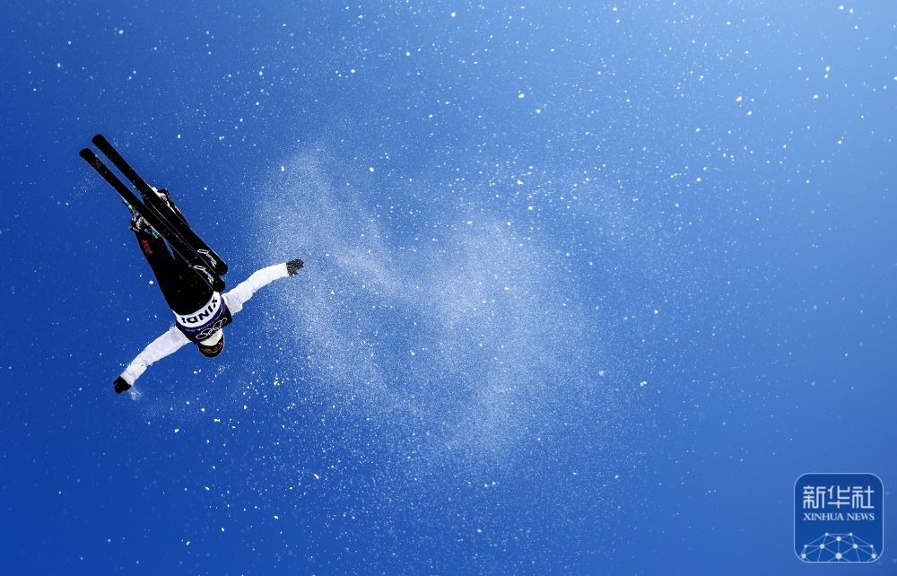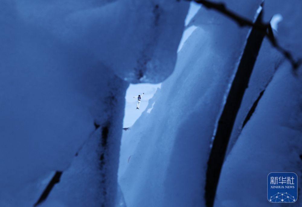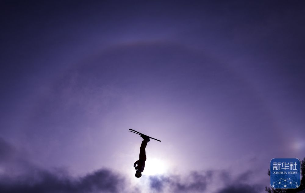↑ 11月7日,自由式滑雪空中技巧国家集训队队员孙佳旭在训练中试跳。 新华社记者 费茂华 摄