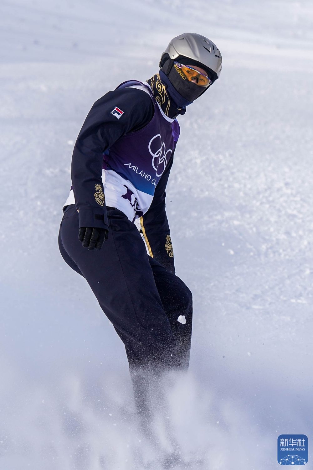 ↑ 11月6日,自由式滑雪空中技巧国家集训队队员齐广璞在训练中试跳。 新华社记者 费茂华 摄