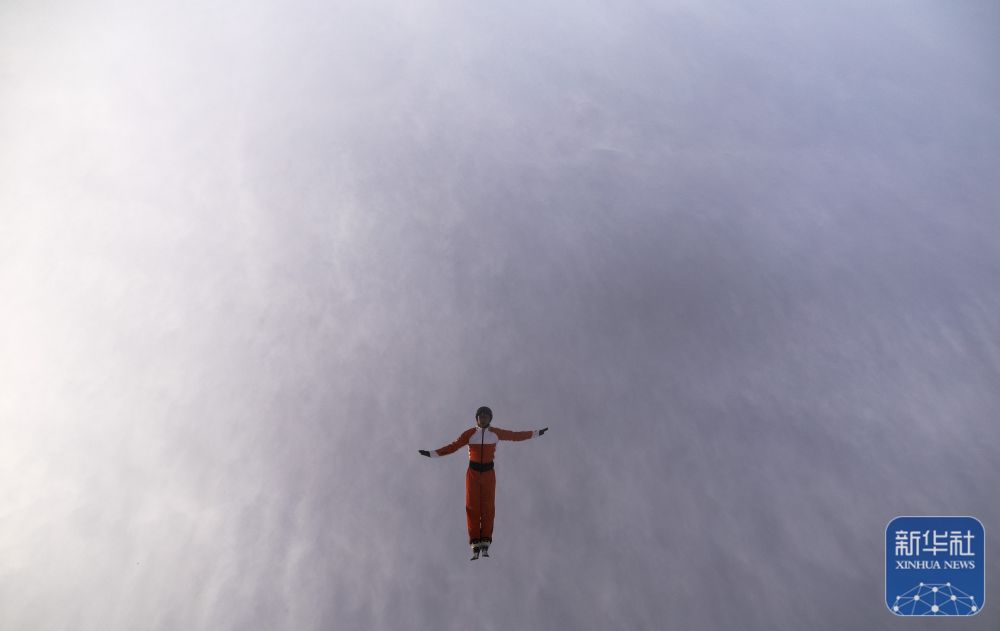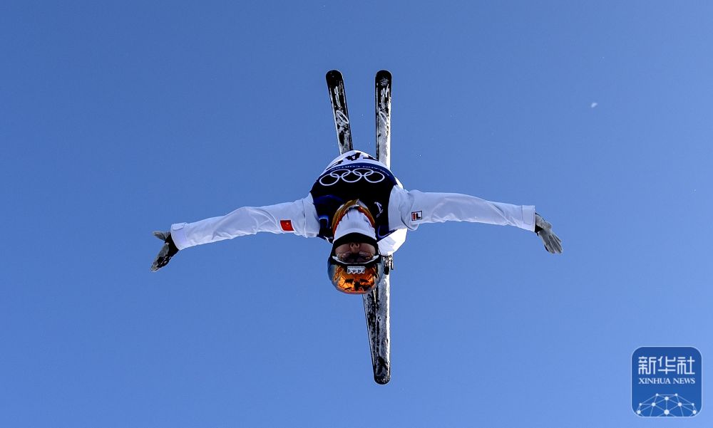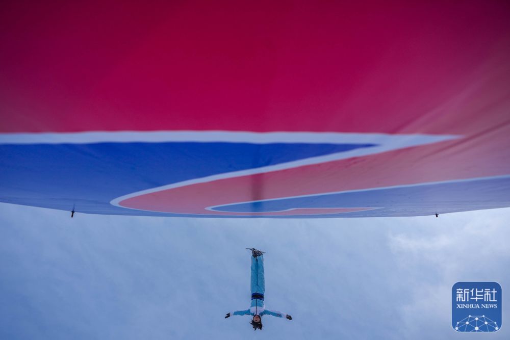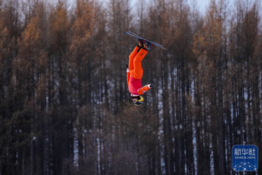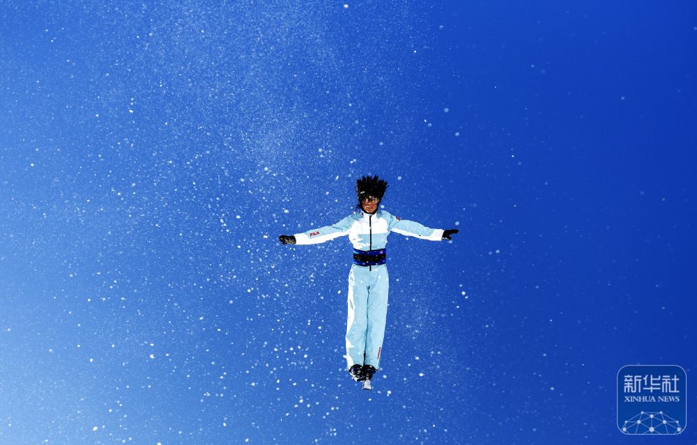 ↑ 11月7日,自由式滑雪空中技巧国家集训队队员徐梦桃在训练中试跳。 新华社记者 费茂华 摄