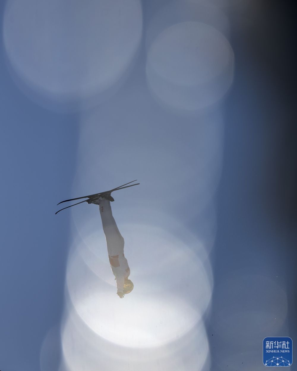 ↑ 11月6日,自由式滑雪空中技巧国家集训队队员徐梦桃在训练中试跳。 新华社记者 费茂华 摄