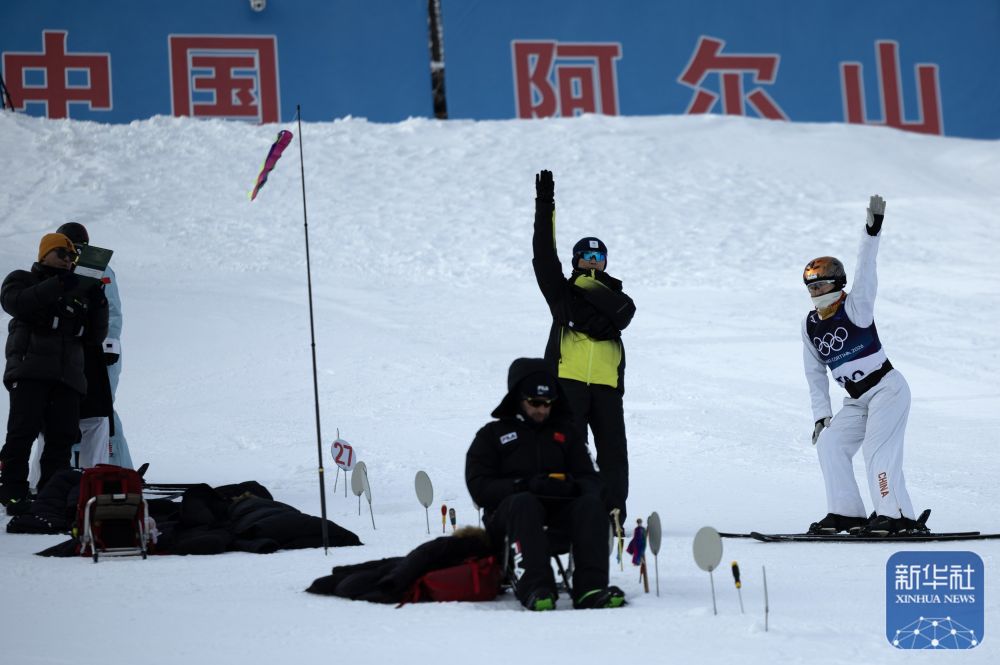 ↑ 11月7日,自由式滑雪空中技巧国家集训队队员陈梅婷在训练中测速。 新华社记者 费茂华 摄