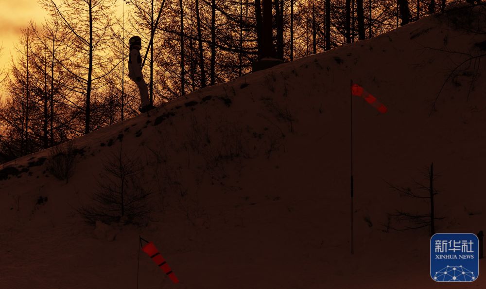 ↑ 11月7日,自由式滑雪空中技巧国家集训队队员李天马准备试跳。 新华社记者 费茂华 摄
