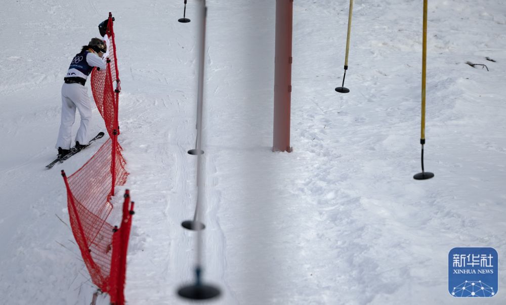 ↑ 11月7日,自由式滑雪空中技巧国家集训队队员徐梦桃在试跳结束后扶着围栏休息。 新华社记者 费茂华 摄