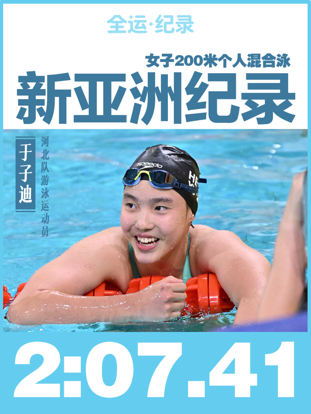↑2025年11月11日,于子迪在游泳女子200米个人混合泳决赛后。