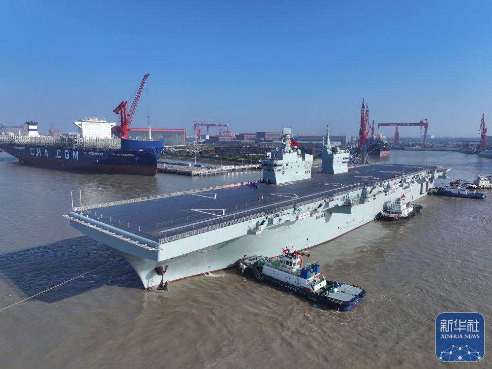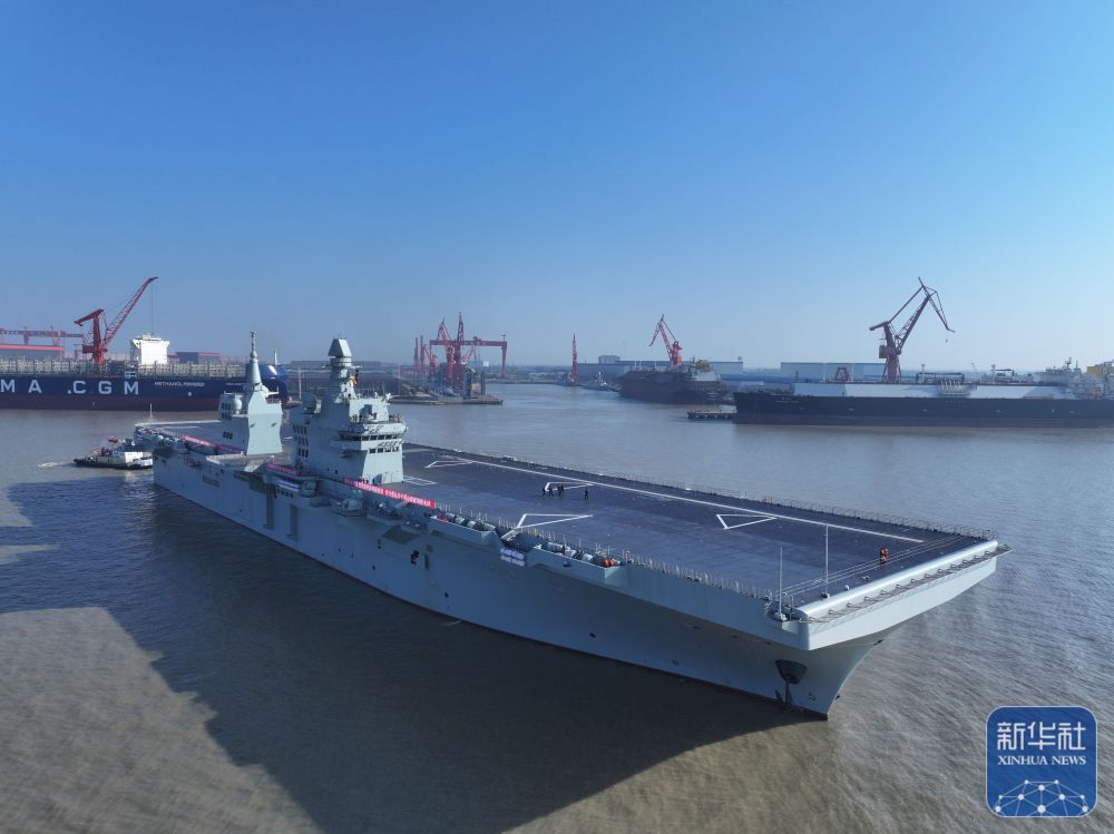 11月14日9时许,我国076两栖攻击舰首舰四川舰从上海沪东中华造船厂码头解缆启航,赴相关海域开展首次航行试验任务。