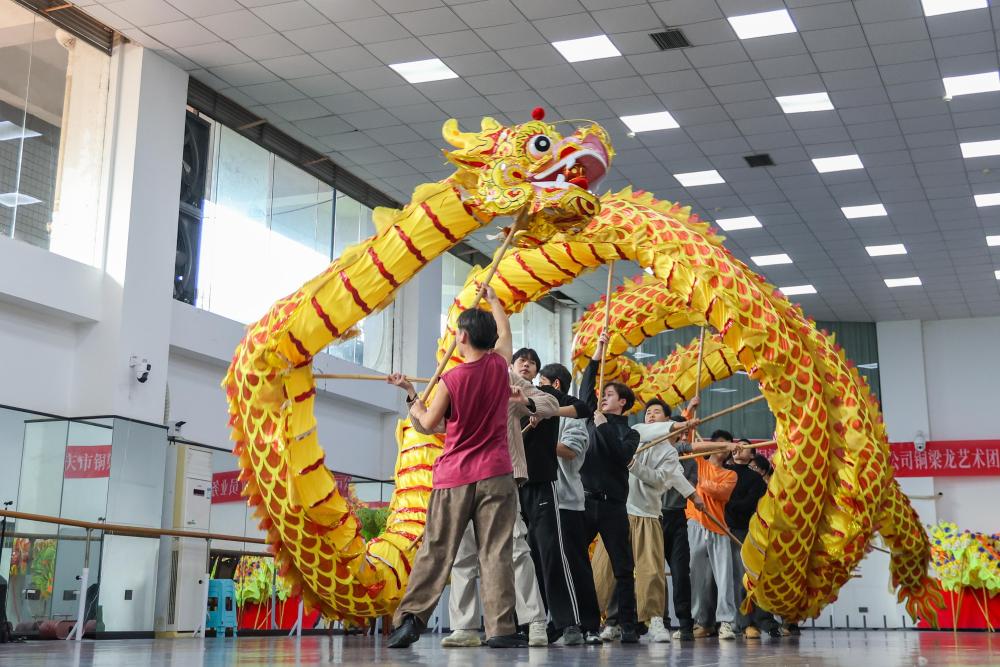 “很多高难度动作我都是第一次接触,需要反复琢磨很久,才能把它学会。”谈及刚入团的经历,今年25岁的魏烨直言道。经过刻苦训练,魏烨如今已能和队友们一起在旋转腾挪间将龙舞得流畅灵动。