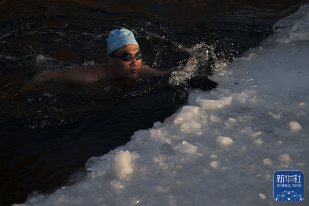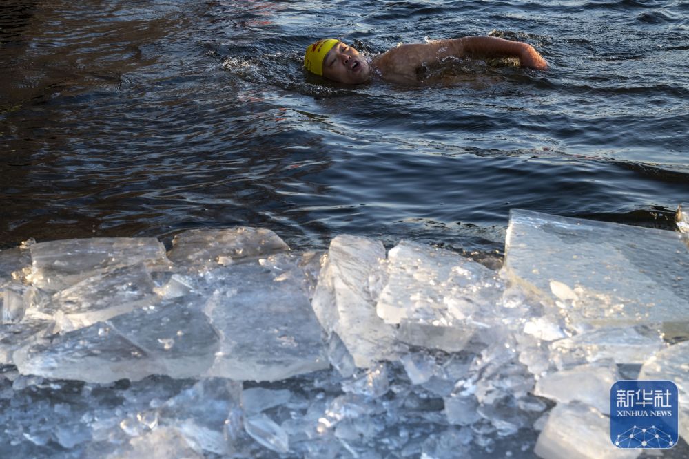 严冬下的哈尔滨,很多冬泳爱好者来到松花江上尽享冬泳乐趣。