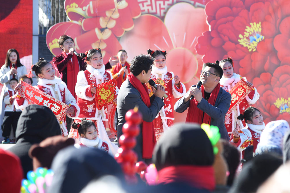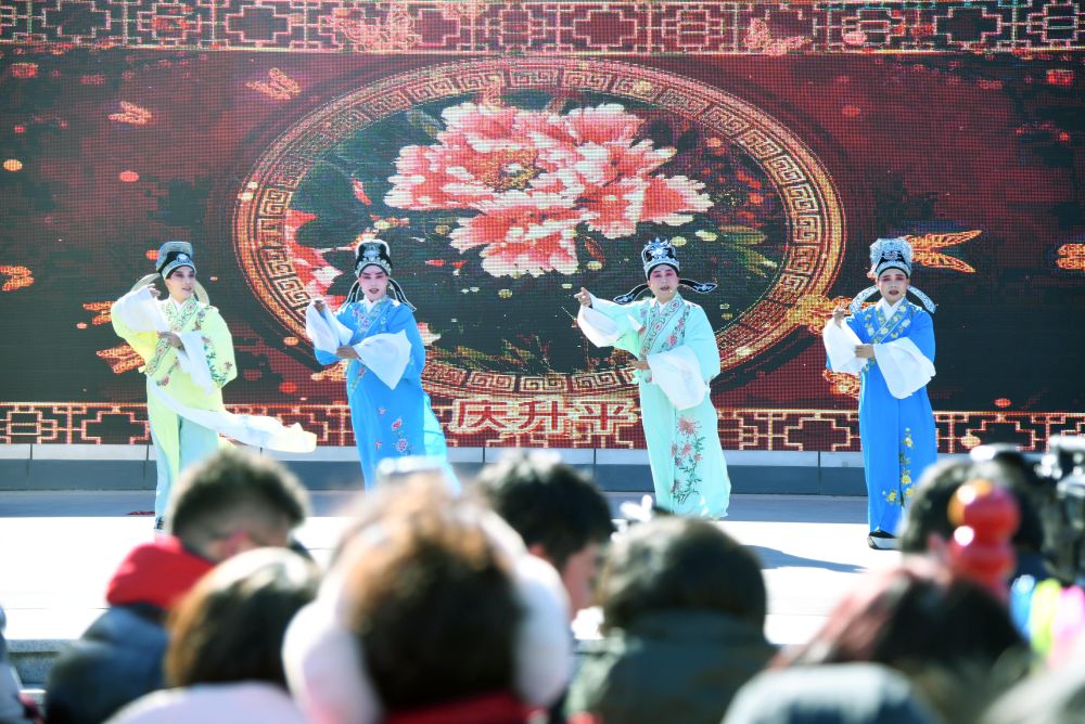 ↑ 2月7日,演员在北京市平谷区“新春十重礼·乐享中国年”活动现场表演文艺节目。新华社记者 任超 摄