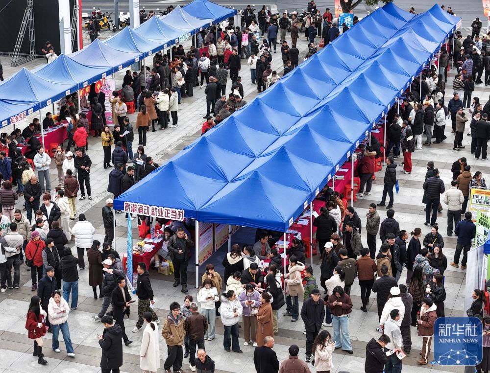 ↑ 这是2月25日在四川省眉山市仁寿县拍摄的2026年春风行动新春专场招聘会(无人机照片)。新华社发(潘建勇摄)